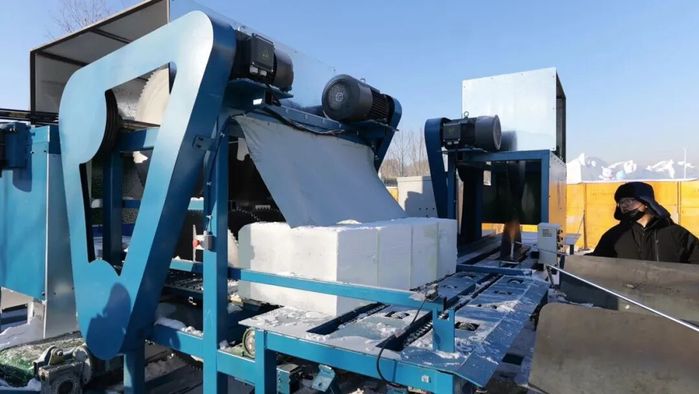 在哈尔滨冰雪大世界现场切冰的“型冰机”