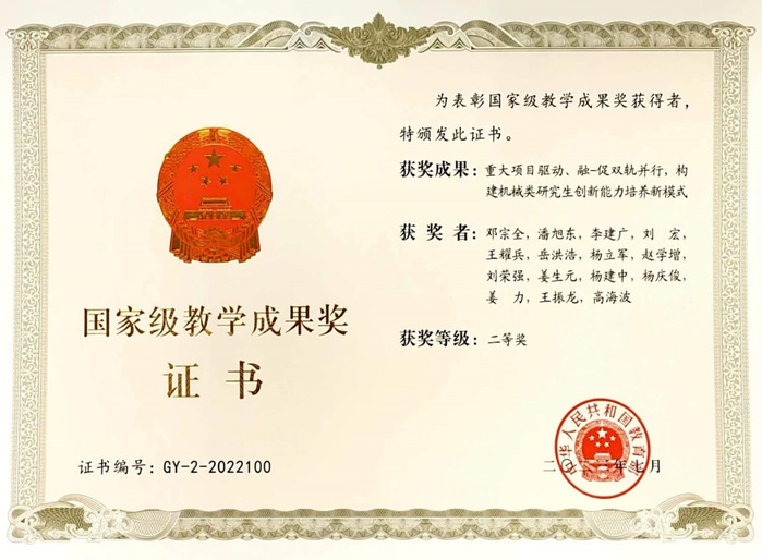 “重大项目驱动、融-促双轨并行,构建机械类研究生创新能力培养新模式”