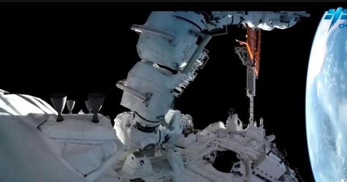 问天舱机械臂助力航天员出舱