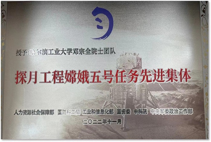 邓宗全院士团队被授予“探月工程嫦娥五号任务先进集体”