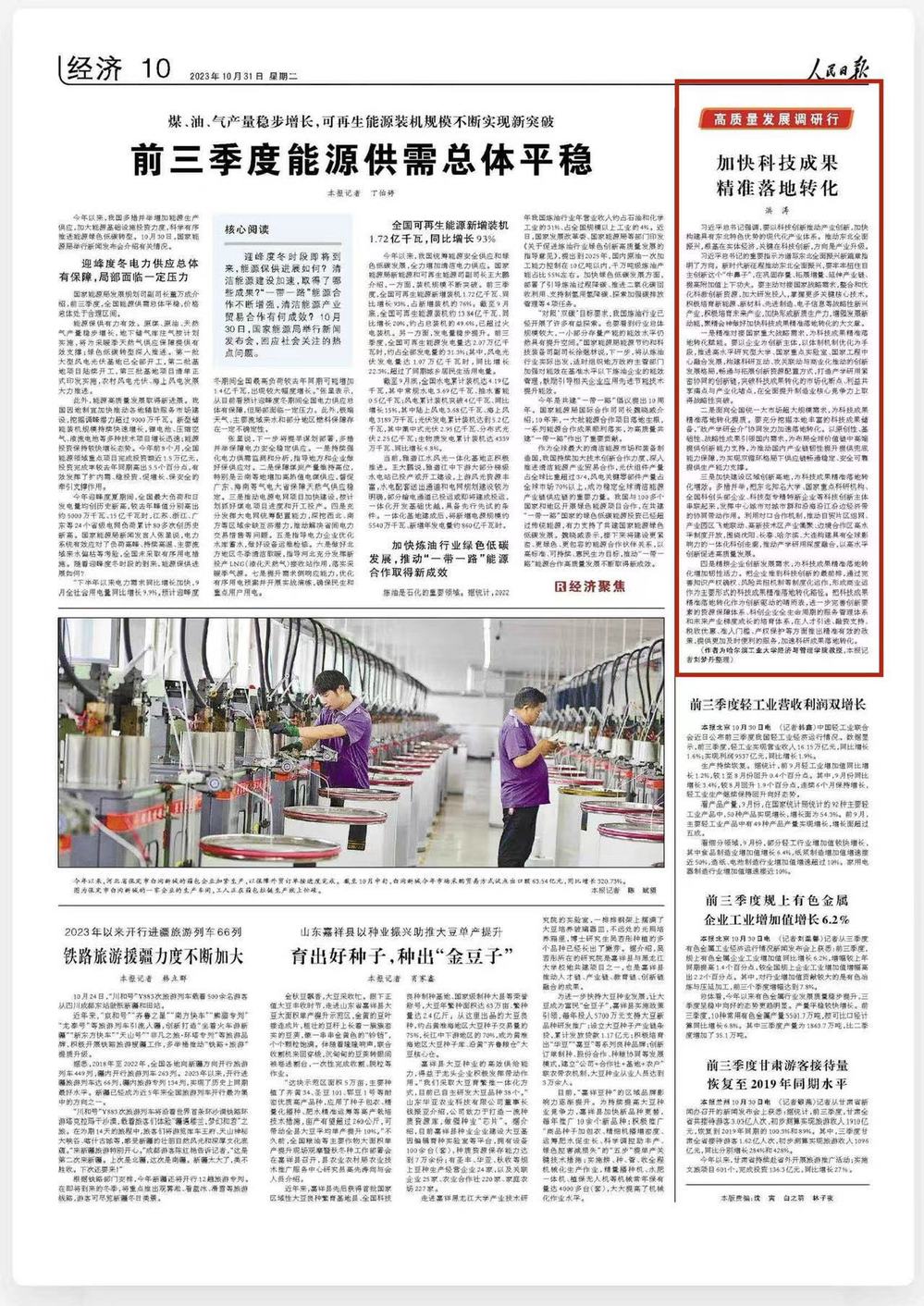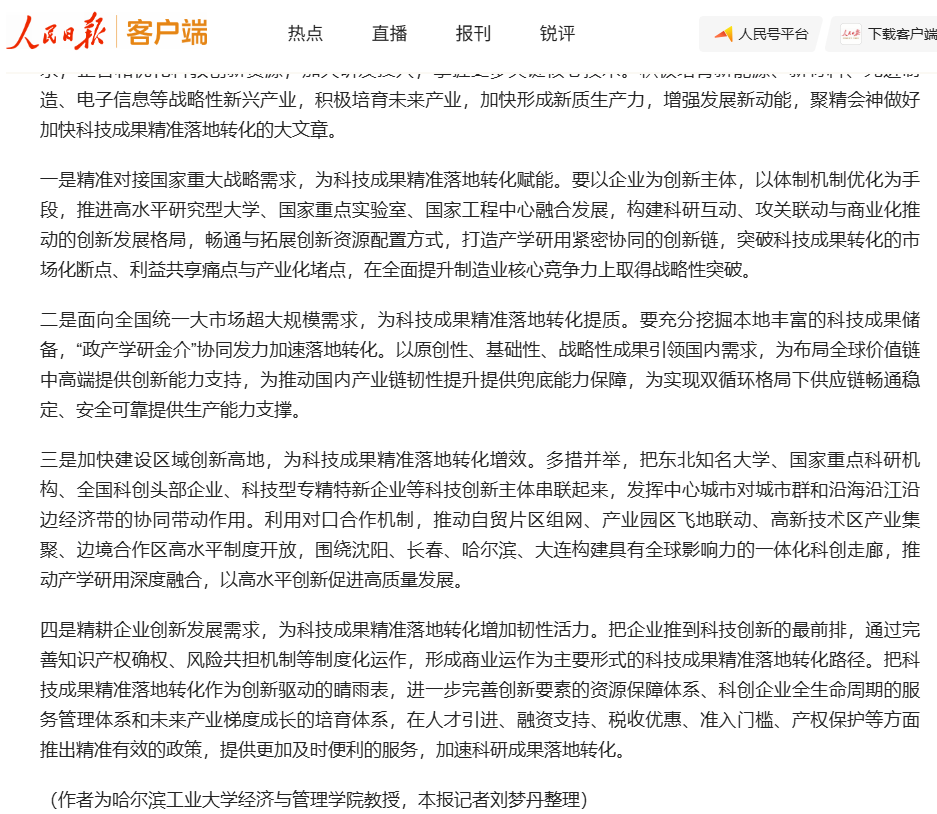 洪涛教授在《人民日报》发表文章