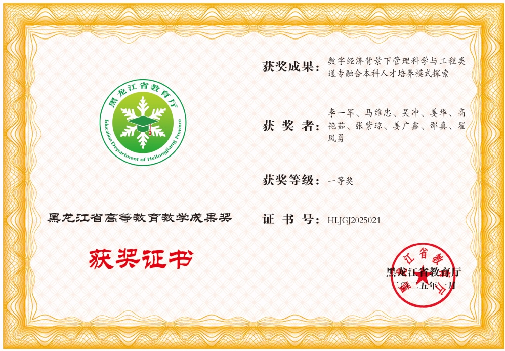 教师团队获评黑龙江省高等教育教学成果奖