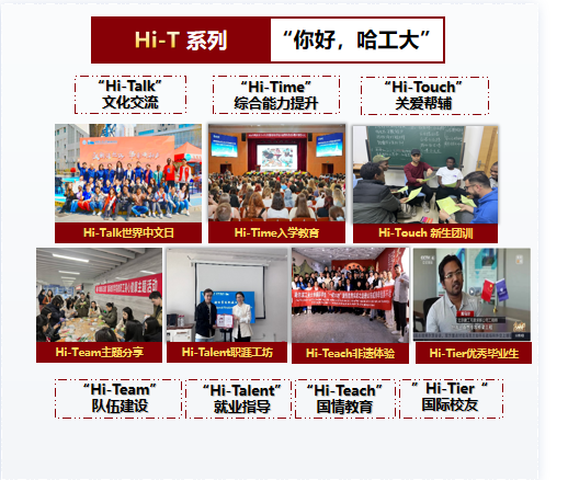 为进一步提升来华留学教育质量,学校以品牌化建设为抓手,深耕“HI-T(你好 哈工大)”核心IP,打造涵盖“Hi-Talk”文化交流、“Hi-Time”能力提升、“Hi-Touch”关怀帮辅、“Hi-Team”队伍建设、“Hi-Talent”就业引导和“Hi-Teach”国情教育等模块的特色活动80余场,为国际学生搭建生活融入、职业规划等全方位成长平台。