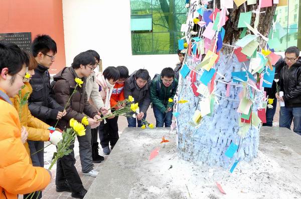 刘震北逝世后,机电学院、能源学院纷纷以座谈会、折纸鹤、发学习倡议等形式纪念这位不同寻常的老人。机电学院师生为了表达对刘震北的思念和缅怀,连夜搜集老人生前的影像材料,制作宣传视频。学院还发出《追思 感恩 传承 奋进——关于向“树下老人”刘震北老师学习的倡议》,号召同学们向刘震北老师学习,培养持之以恒的坚守精神、塑造无私奉献的高尚情操、传承大爱无疆的中华美德,传承爱的力量和生命的感动,肩负起当代大学生为实现“中国梦”应尽的责任。同学们还在诚意楼前的大树下为老人折纸鹤、献花表达怀念之情。路过的同学们也自发地参加到缅怀活动中。“我们有责任向全校师生传播刘老师的事迹,将刘老师的精神发扬光大。”学院青协的李霄云同学说。“虽然没有接触过刘老师,但之前听辅导员介绍过刘老师的事迹,觉得刘老师的精神值得我们永远铭记,希望刘老师一路走好。”航天学院苏益沛同学说。