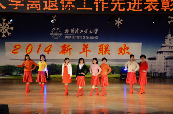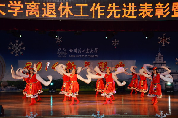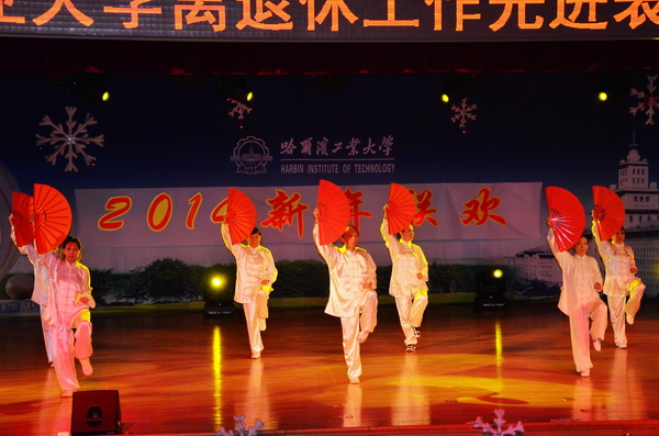 表彰会后,离退休职工艺术团、老年大学和各退休职工活动队表演了合唱、舞蹈、京剧、柔力球、武术等节目,共同迎接2014年新年。