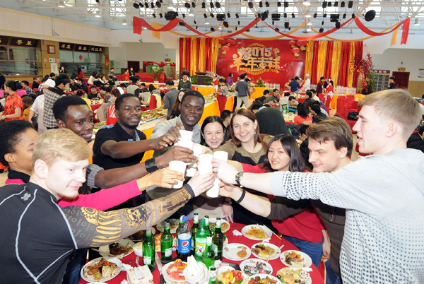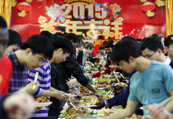 据了解,今年春节期间我校共有245名学生留校,并有287名外籍学生在学校过年。为了让留校学生度过一个快乐祥和的春节,学校为每名留校学生准备了新年红包,并为他们免费提供丰盛的年夜饭及初一至初三期间的亲情餐。后勤集团和各学院还积极准备、精心策划,推出了一系列丰富多彩的亲情活动,保证师生员工能够度过一个幸福温暖的春节。