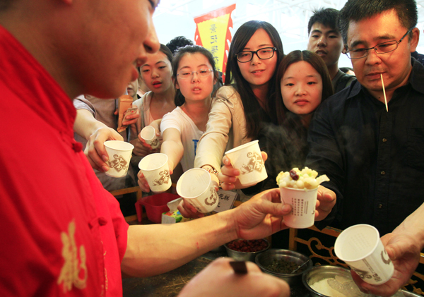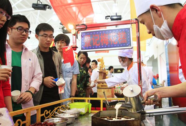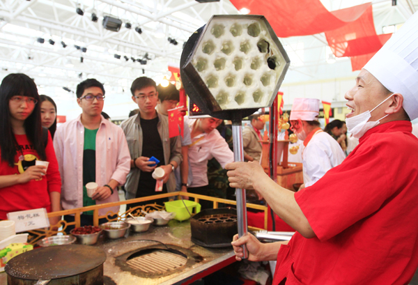 为了加强同学们对中国民俗文化与传统饮食文化的了解,丰富师生们的餐桌,并近距离欣赏民俗文化的技艺展示,饮食中心除了准备丰富多样的美食外,还特别聘请了民间艺人现场表演各种名小吃的制作过程。