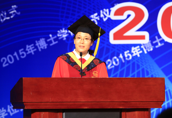 副校长丁雪梅主持学位授予仪式并宣读授予博士学位的决定