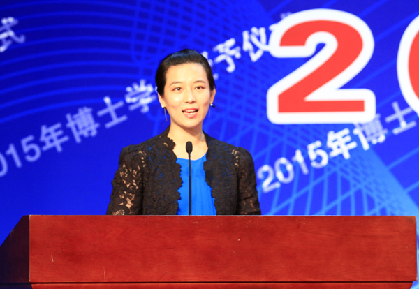 博士毕业生亲友代表郁竹首先感谢学校、导师对学生的培养,祝福毕业生圆满完成学业,并希望在新的工作岗位上努力工作,以优异工作成绩报答学校和社会。