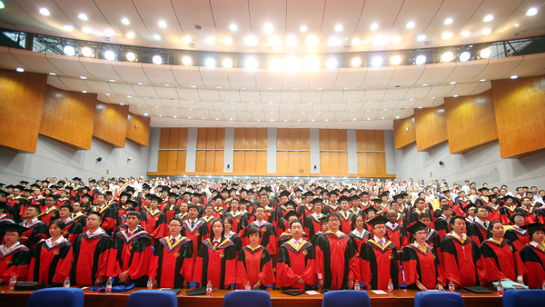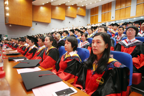 全体师生齐唱校歌,博士学位授予仪式落下帷幕。 校长助理刘宏,校学位委员会委员,相关学院领导、博士生导师参加学位授予仪式。