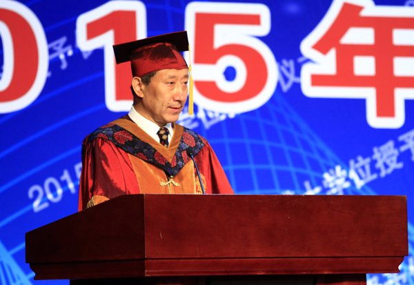 周玉对博士毕业生提出3点希望:一是坚持在博士学习期间养成的从“严”作风,注重过程的把握和控制,坚持严于律己、严谨求实,不空不松、从严以终;二是坚持在博士生涯锻炼的百折不挠的“韧”劲,面临再大的困难,也要坚忍不拔、愈挫愈勇,发挥“咬定青山不放松”的坚韧,升华你们在事业发展中的价值;三是发扬博士阶段养成的“创”的精神,要敢于创新、善于创新、精于创新,承担起开拓创新、科技强国的光荣使命。最后,他说:“希望大家以‘经世致用之学’,在工作中为家庭赢得幸福,在拼搏中为母校赢得荣誉,在奋进中为实现中华民族伟大复兴的中国梦做出自己最大的贡献!”