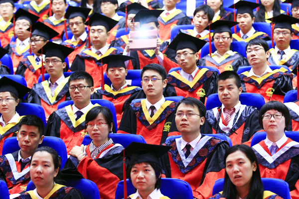 哈工大报讯(刘忠奎/文 兰锐/图)“7月的哈工大风景秀美,校园里满载着收获的喜悦。你们获得学位,必将身担重任,在国家改革发展的大潮中逐浪驰骋。”7月17日上午,博士学位授予仪式在学生活动中心301剧场举行,校长周玉为获得博士学位的283名博士毕业生援正流苏、深情寄语,并合影留念。