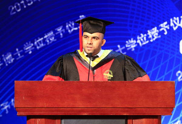 博士留学生代表、材料学院欧利德在发言中深情回顾了在哈工大学习的点滴故事,他激动地说:“我爱哈工大,我会常回来看看的,希望我的女儿能像我一样在哈工大学习。”