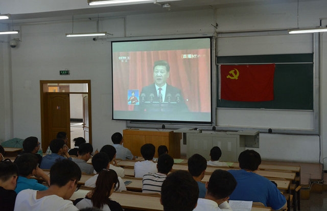 哈工大报讯(宗合 文/图)7月1日上午10时,中共中央庆祝中国共产党成立95周年大会在人民大会堂隆重召开。中共中央总书记、国家主席、中央军委主席习近平在大会上发表了重要讲话。广大师生纷纷通过网络、电视、广播等形式收听收看大会实况。在校校领导、党群机关副处级及以上领导,威海校区副处级以上党员领导干部和部分党员代表,深圳研究生院师生党员分别观看大会实况。