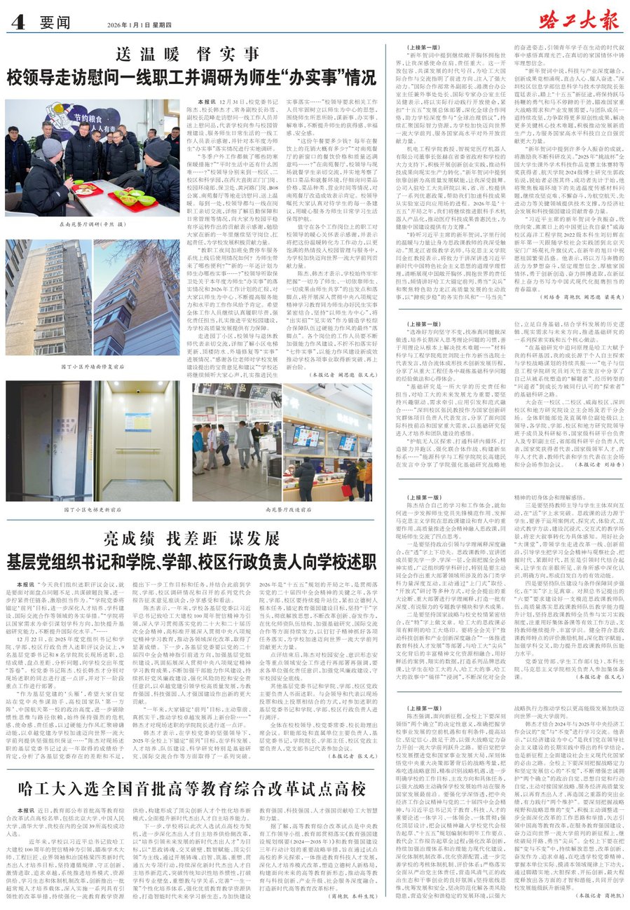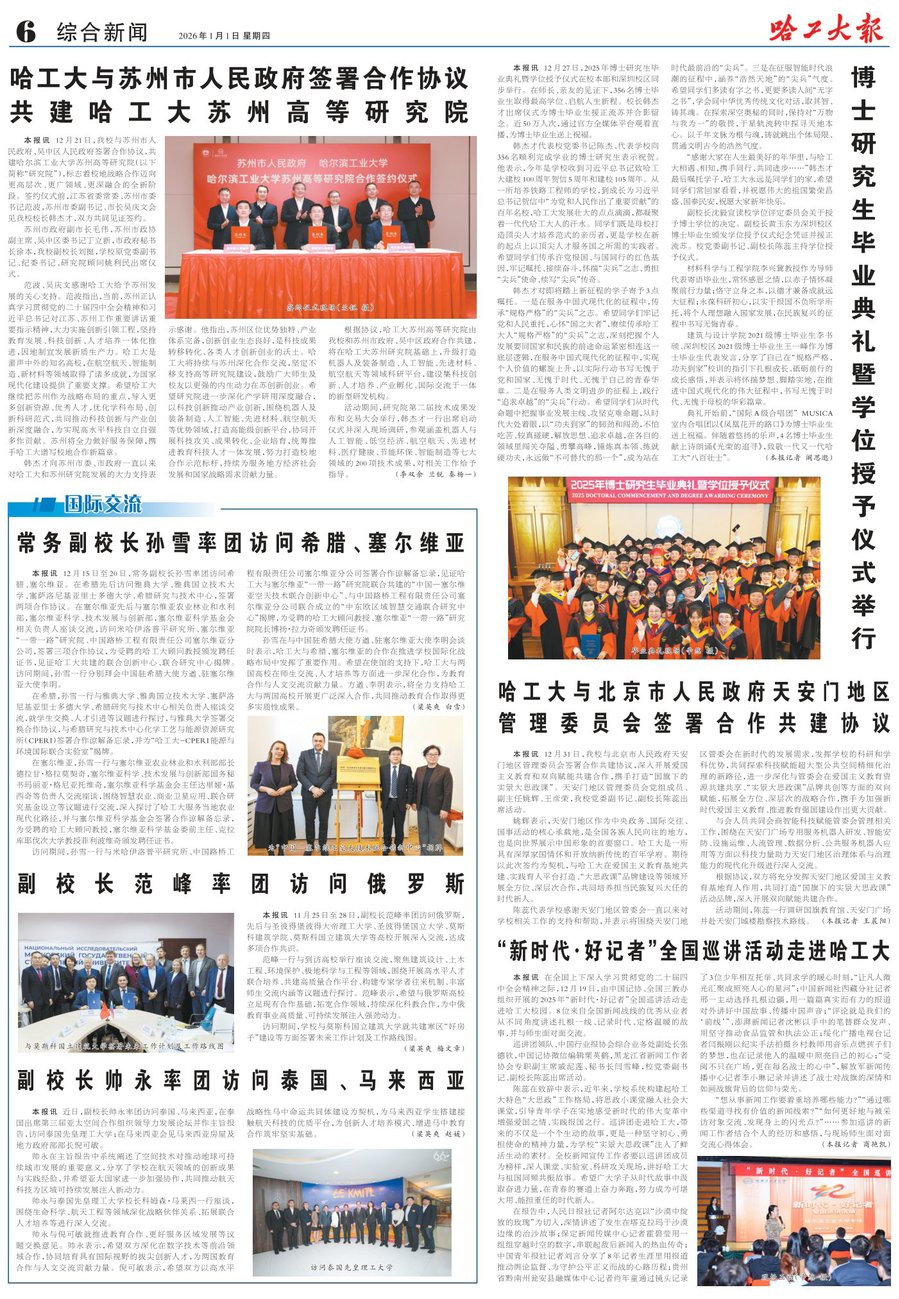哈工大全媒体(闫明星/文)12月10日,《中国组织人事报》以《哈工大党委推动党建工作与学校建设深度融合——扛起航天第一校“尖兵”责任》为题,从“政治建设摆首位 开展大学习、大讨论、大宣讲”“推行‘+支部’模式 发挥战斗堡垒作用”“以师生为中心 办好实事暖人心”3个方面,对我校党委坚持以贺信精神为指引,主动扛起航天第一校“尖兵”责任,自觉站位于党中央参谋助手、高校国家队,推动党建工作与学校建设深度融合工作成效进行了报道。