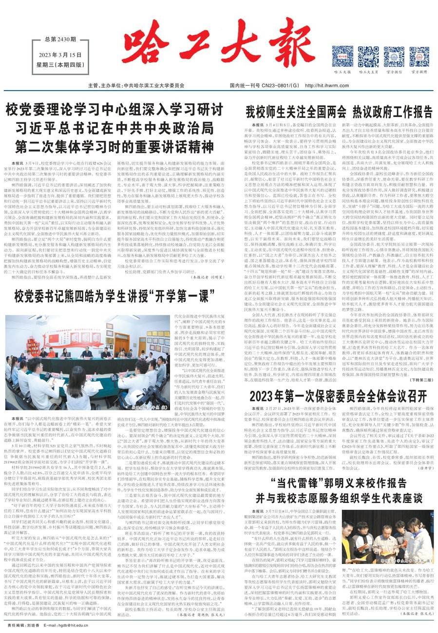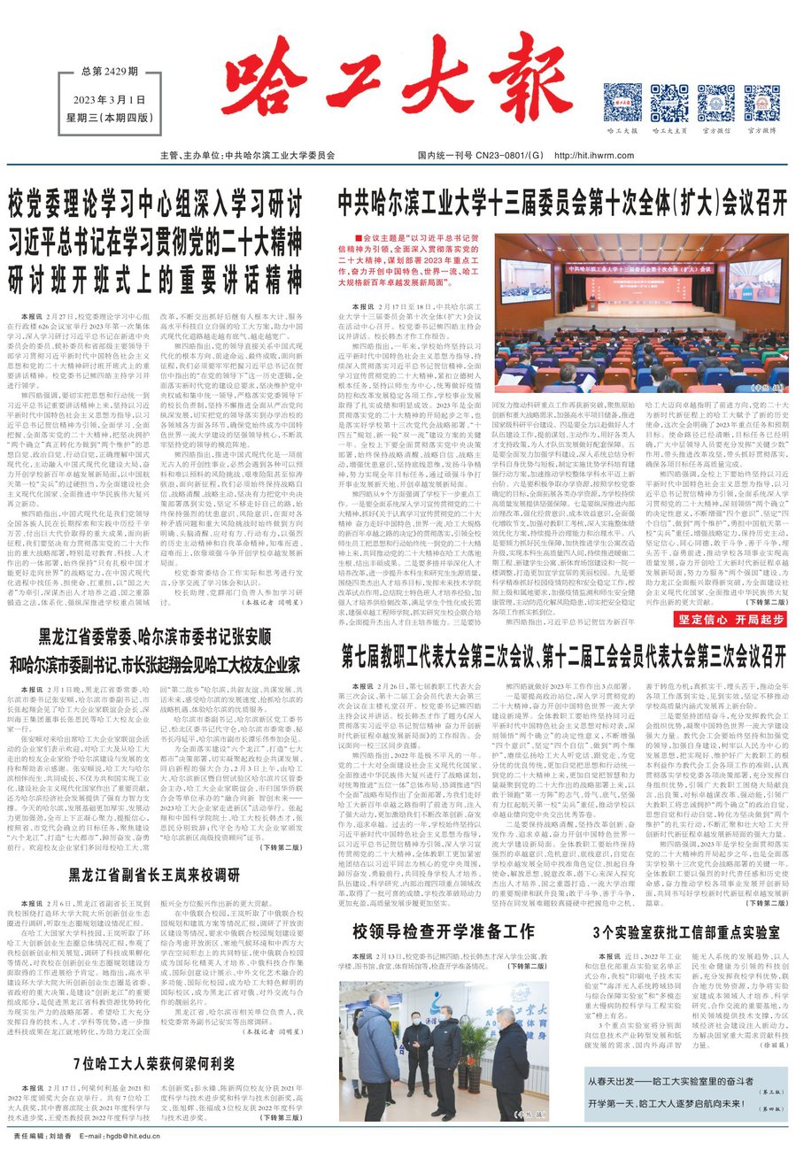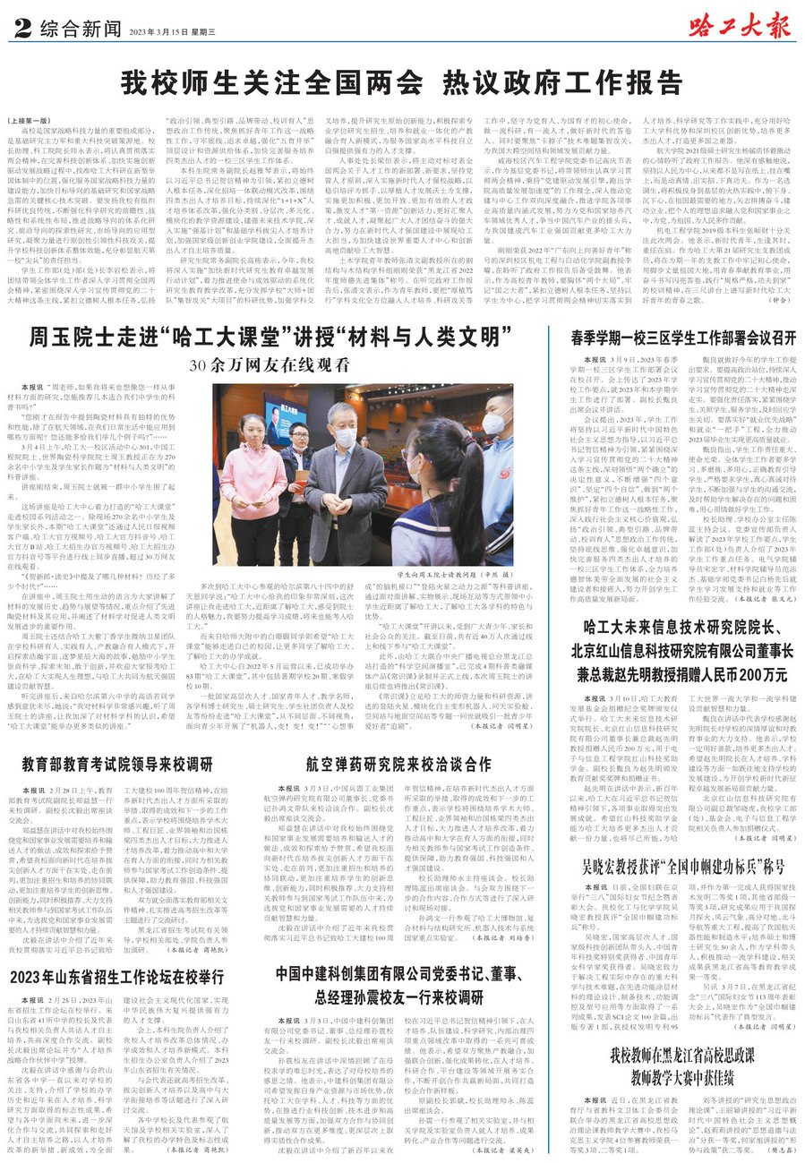 在听取相关单位汇报后,韩杰才指出,党的二十大报告强调,在全面建设社会主义现代化国家新征程上必须“坚持以人民为中心的发展思想”“让现代化建设成果更多更公平惠及全体人民”,同时在部署未来5年工作时提出要“广泛开展全民健身活动,加强青少年体育工作,促进群众体育和竞技体育全面发展,加快建设体育强国”。全校上下要进一步提高政治站位,主动对标党中央作出的战略部署,坚持解决当前和面向长远相结合,加强统筹协调、做好规划设计,同时要站在培养德智体美劳全面发展的社会主义建设者和接班人的高度,加强和改进学校体育工作,注重吸收和借鉴世界一流大学的经验和做法,着力打造具有哈工大特色、让学生终身受益的体育文化。