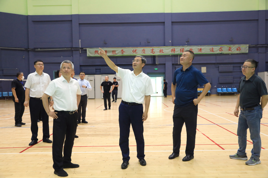 在学生公寓体育馆、二校区文体中心,熊四皓仔细询问各类场馆数量、设施配备和安全保障等有关事项,叮嘱相关单位和工作人员始终坚持以师生为中心,通过更加细致、有效的工作,为师生参与体育运动、增强身体素质提供良好服务和条件。