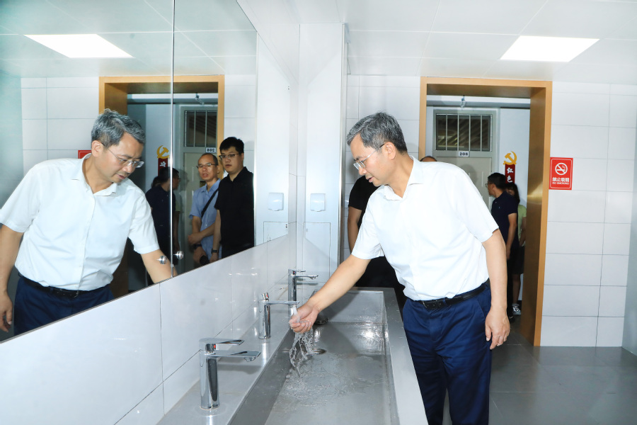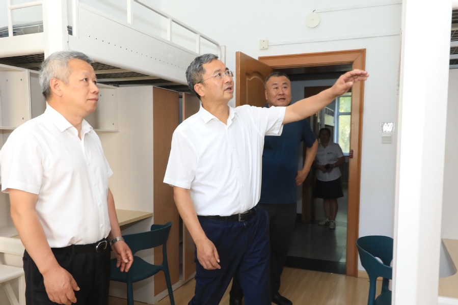 哈工大全媒体(马晓雪/文 辛然/图)8月15日,校党委书记熊四皓带队深入黄河路门岗、学生公寓、暖廊、食堂、体育场馆、教学楼、超市等,检查开学准备工作。