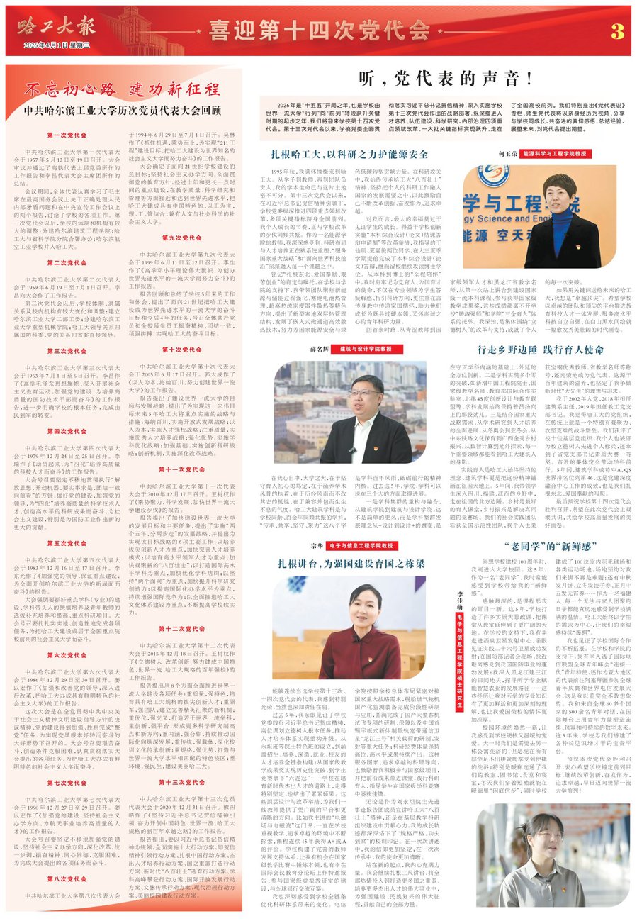 哈工大全媒体(刘培香/文 辛然 官微等/图)2023年是全面贯彻党的二十大精神的开局起步之年,是学校奋力走好新百年卓越发展之路的关键一年。哈工大始终坚持以习近平新时代中国特色社会主义思想把舵定向,以习近平总书记致哈工大建校100周年贺信精神为引领,深刻领悟“两个确立”的决定性意义,增强“四个意识”、坚定“四个自信”、做到“两个维护”,勇担中国航天第一校“尖兵”重任,推动教育、科技、人才一体部署在哈工大落地落靠,持续把主题教育探索的好经验好做法转化为长效机制,以打造新一批国之重器、培育新一批杰出人才的新担当新作为,奋力开创学校新时代新征程卓越发展新局面——