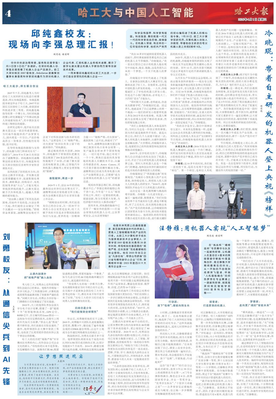中共中央政治局常委、国务院总理李强在哈工大调研