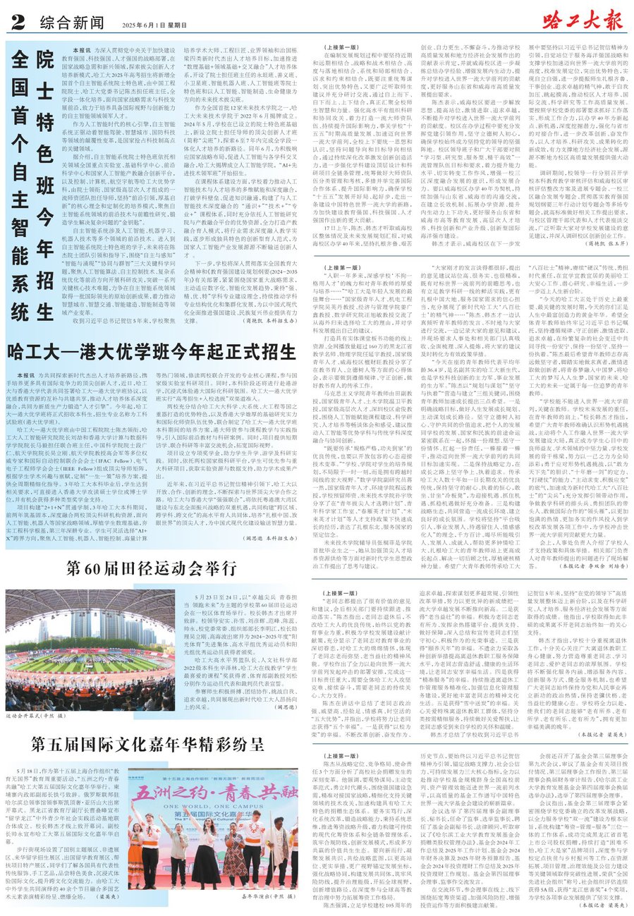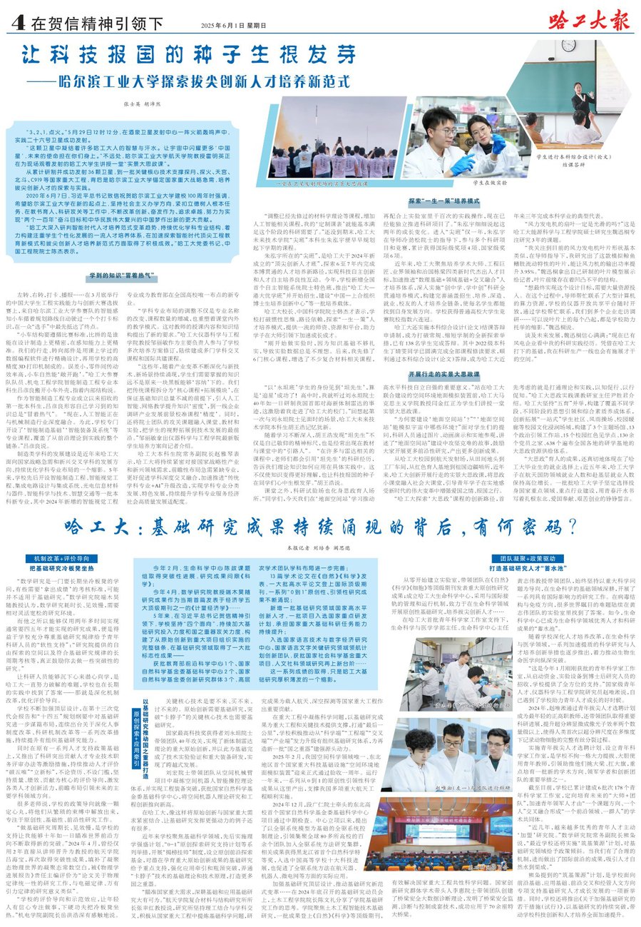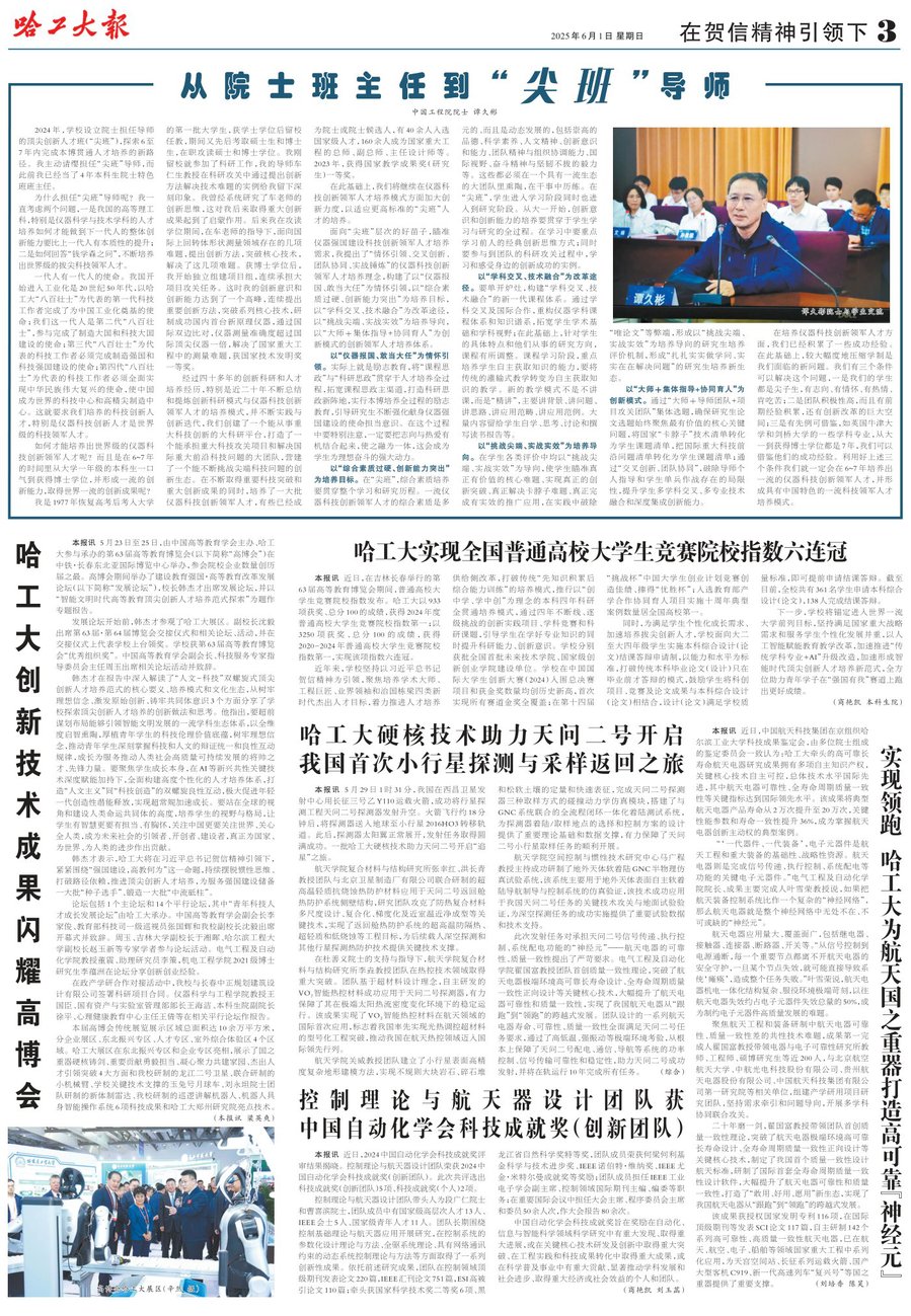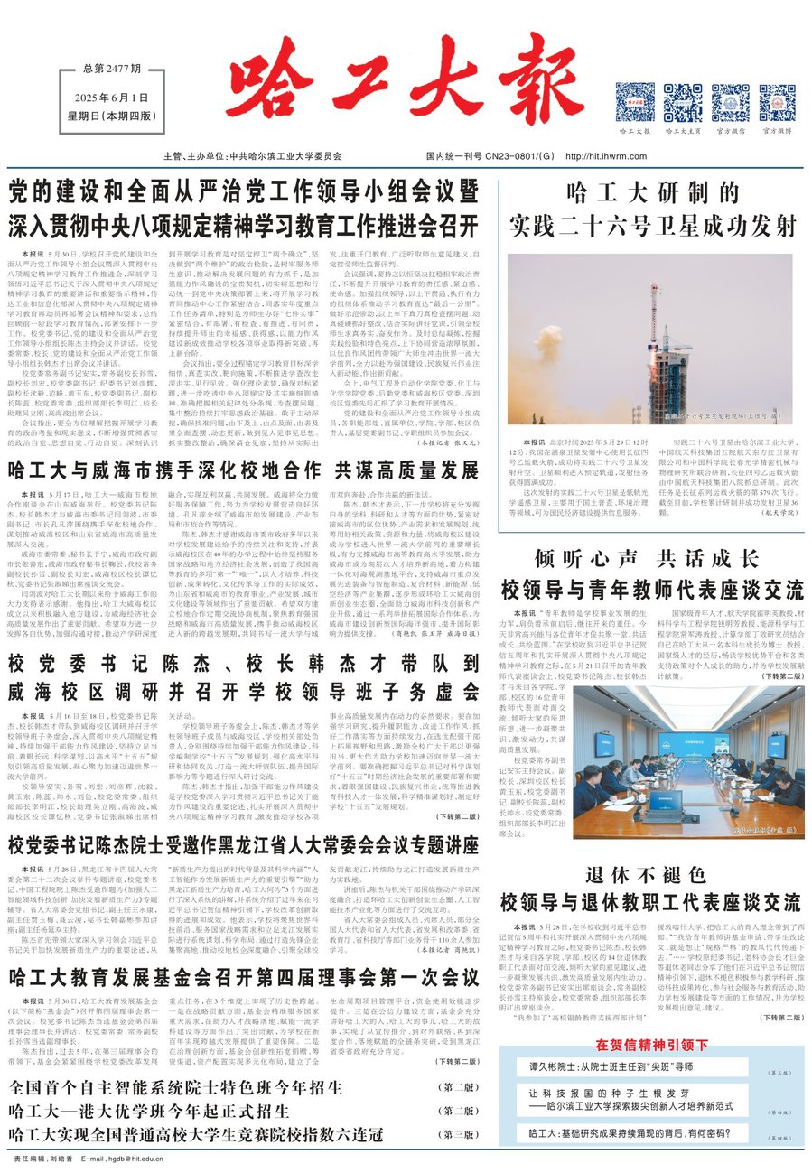 二是要始终牢记习近平总书记重要嘱托,以“规格严格,功夫到家”的校训精神干成一番新事业、干出一片新天地,争做堪当大任的治国栋梁。要知难而进、向大而行,以哈工大人特有的硬汉品质,奔着问题去、瞄着卓越干,在较真碰硬、攻坚克难、“自找苦吃”中锤炼干事创业的“规格”、练就开辟新路的“功夫”,在扎扎实实的服务奉献中练就担大任、堪重任的宝贵品质和过硬能力。