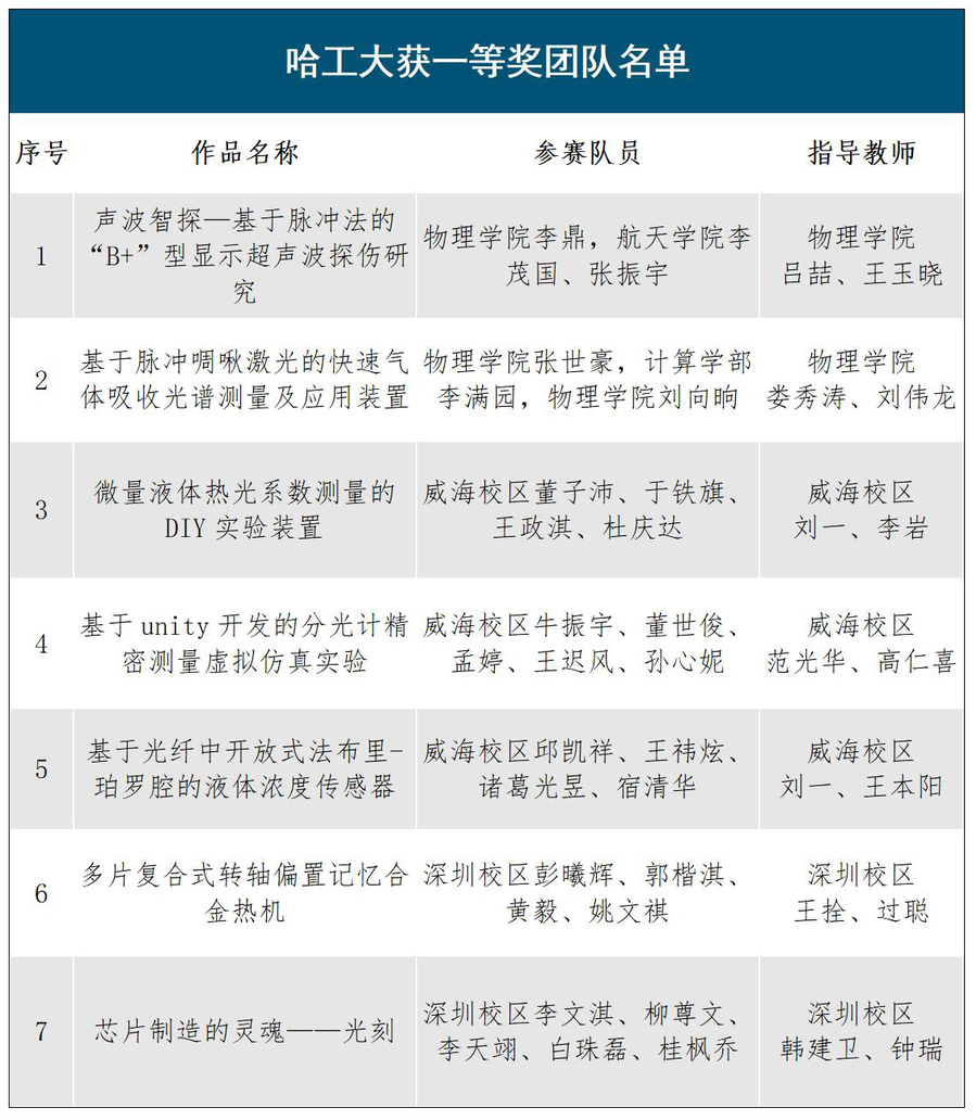 哈工大学子在第十届全国大学生物理实验竞赛(创新)中获7项一等奖
