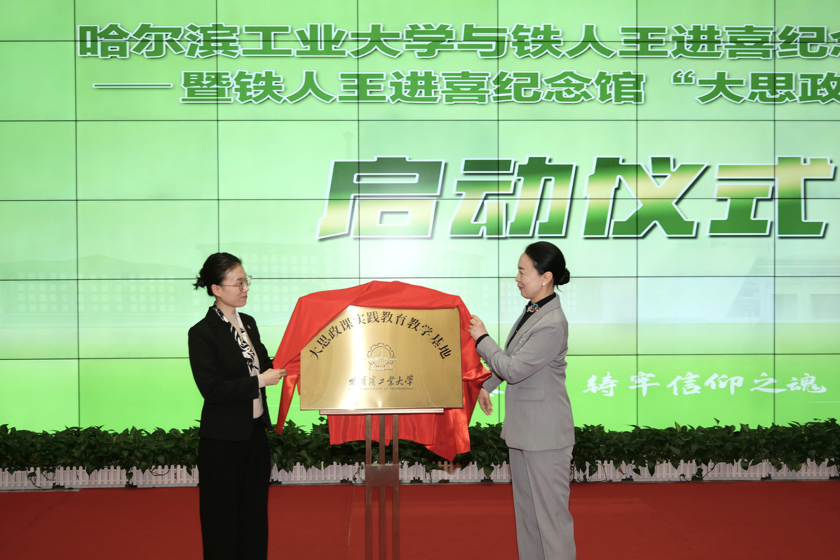 与会嘉宾共同启动“大思政直通车”教育项目。哈工大党委宣传部/党委教师工作部、党委学生工作部相关负责人与铁人王进喜纪念馆相关负责人共同签署馆校共建协议,并为双方合作共建的哈工大大思政课实践教育教学基地揭牌。