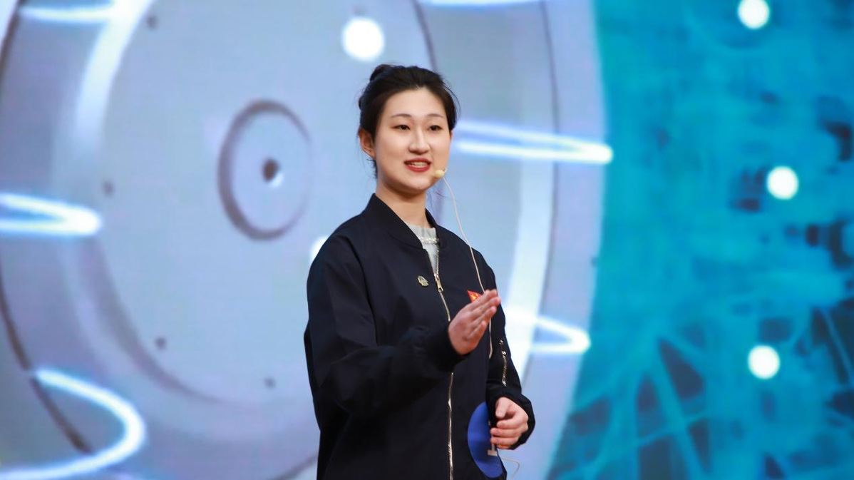 杨贝宁以《“天宫”心跳:霍尔推力器的400公里守护》为题,讲述了面对太空轨道维持难题,哈工大科研团队研制的霍尔推力器通过高速离子喷射提供高效推力,助力中国空间站稳定运行在距地400公里的临界轨道,为未来深空探测奠定了基础。