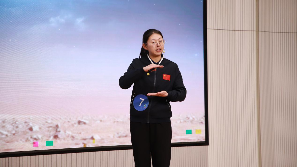 贾雯倩以《从“玉兔”到“祝融”——“太空越野车”的移动密码》为题,结合“玉兔号”月球车首创的六轮摇臂式悬挂装置和“祝融号”火星车搭载的智能主动悬挂系统,讲述了中国航天人如何突破地外天体复杂路况挑战的科研攻关故事,诠释了哈工大人直面深空探测技术瓶颈的攻坚精神和勇攀科技高峰、矢志探索星辰的使命传承。