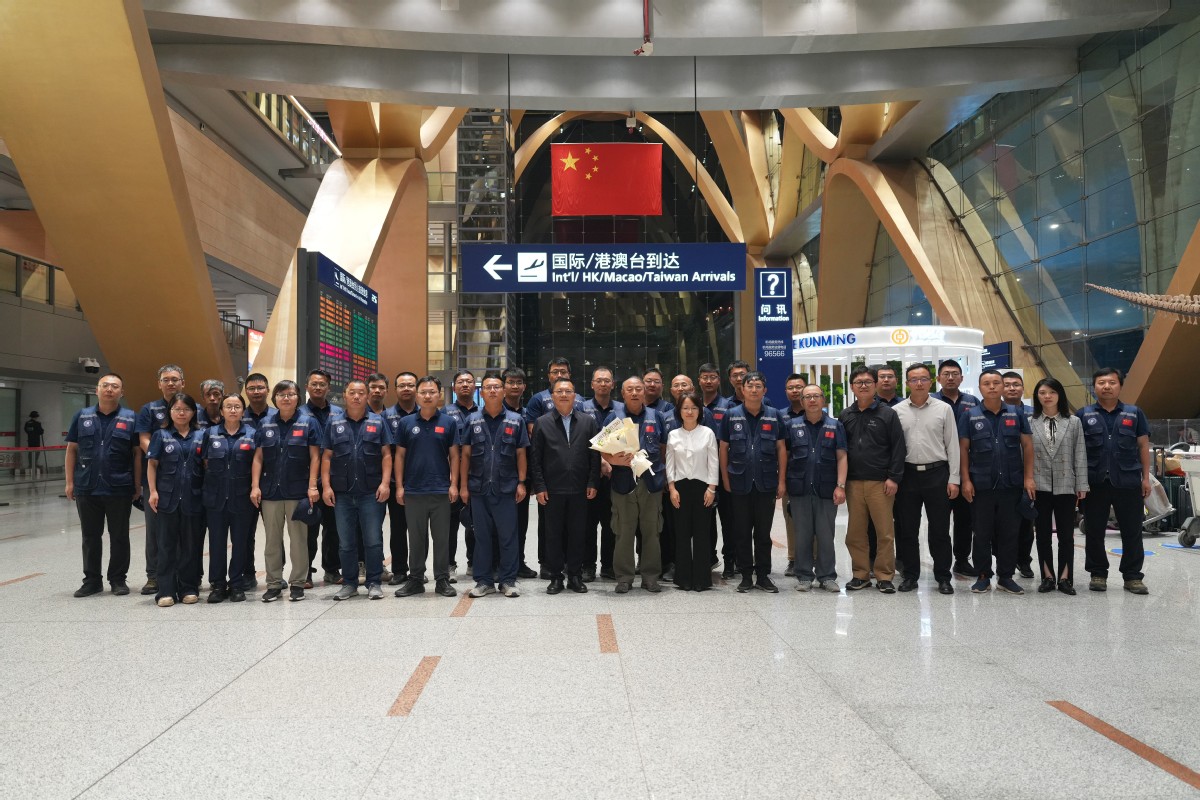 缅甸地震灾害评估中国专家组回国(第二排右八为籍多发)