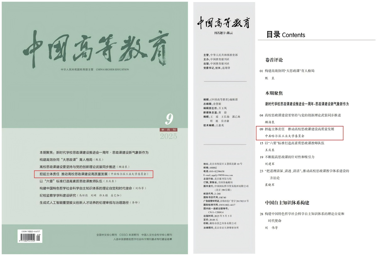 《中国高等教育》刊发哈工大党委理论文章:担起主体责任 推动高校思政课建设高质量发展