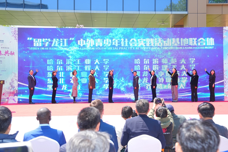我校、哈尔滨工程大学、东北林业大学等“留学龙江”中外青少年社会实践活动基地联合体首批十所高校负责人上台启动联合体成立。