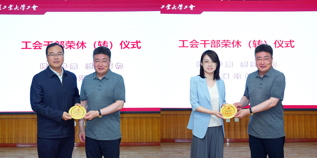 会上举行了工会干部荣转(休)仪式。安实为荣转(休)工会干部代表颁发纪念奖盘。