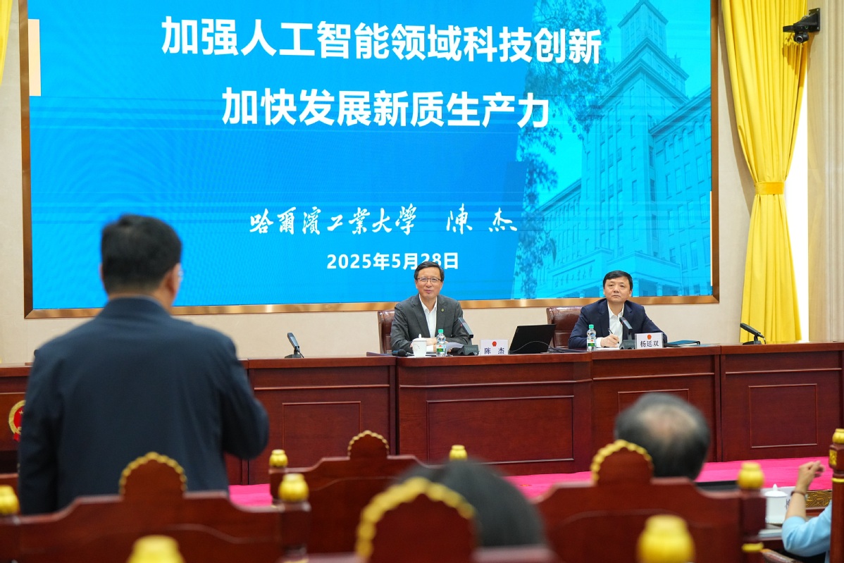 陈杰首先带领大家深入学习领会习近平总书记关于加快发展新质生产力的重要论述,从“新质生产力提出的时代背景及其科学内涵”“人工智能作为发展新质生产力的重要引擎”“助力黑龙江新质生产力培育,哈工大何为”3个方面,结合世情、国情、省情和校情进行了深入系统的讲解。