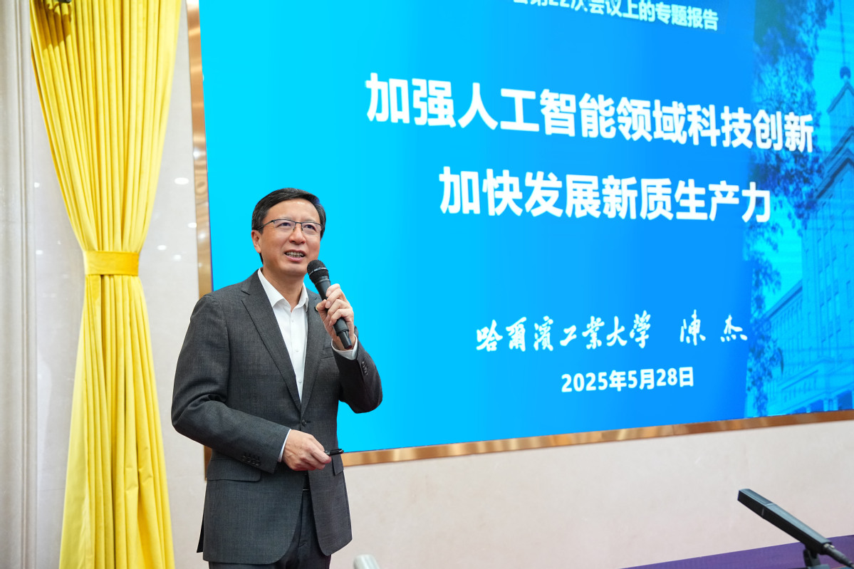 哈工大全媒体(商艳凯/文 辛然/图)5月28日,黑龙江省十四届人大常委会第二十二次会议举行专题讲座,校党委书记、中国工程院院士陈杰受邀作题为《加强人工智能领域科技创新 加快发展新质生产力》专题辅导。省人大常委会党组书记、副主任王永康,副主任贾玉梅、聂云凌,秘书长韩嘉彬参加讲座;副主任杨廷双主持。