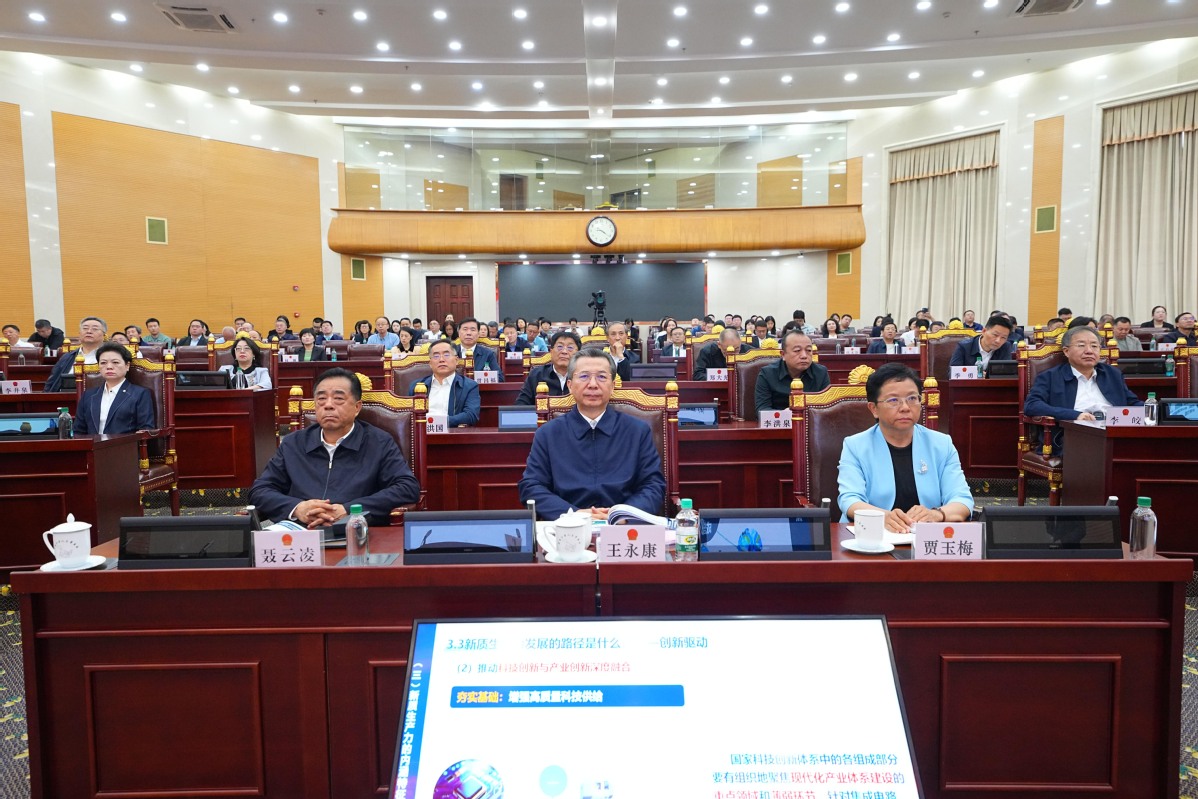 陈杰立足理论、历史和实践不同维度,先后阐述了生产力在推动社会进步方面的重要作用、科技创新作为发展生产力的核心驱动力,着重介绍了新质生产力的基本内涵、鲜明特征、发展路径等内容。他表示,加快发展新质生产力,要坚持创新驱动,围绕做强科技创新“核心要素”、推动科技创新与产业创新深度融合、全面深化科技体制机制改革持续发力,在加强应用牵引的基础研究、推进关键核心技术合力攻坚、构筑科研创新人才高地、增强高质量科技供给、强化企业科技创新主体地位、促进科技成果转化应用等方面取得新的更大成效。