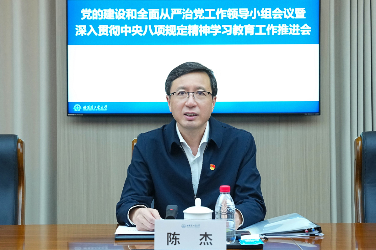 哈工大全媒体(张又元/文 辛然/图)5月30日,学校召开党的建设和全面从严治党工作领导小组会议暨深入贯彻中央八项规定精神学习教育工作推进会,深刻学习领悟习近平总书记关于深入贯彻中央八项规定精神学习教育的重要讲话和重要指示精神,传达工业和信息化部深入贯彻中央八项规定精神学习教育再动员再部署会议精神和要求,总结回顾前一阶段学习教育情况,部署安排下一步工作。校党委书记、党的建设和全面从严治党工作领导小组组长陈杰主持会议并讲话。校党委常委、校长、党的建设和全面从严治党工作领导小组组长韩杰才出席会议并讲话。