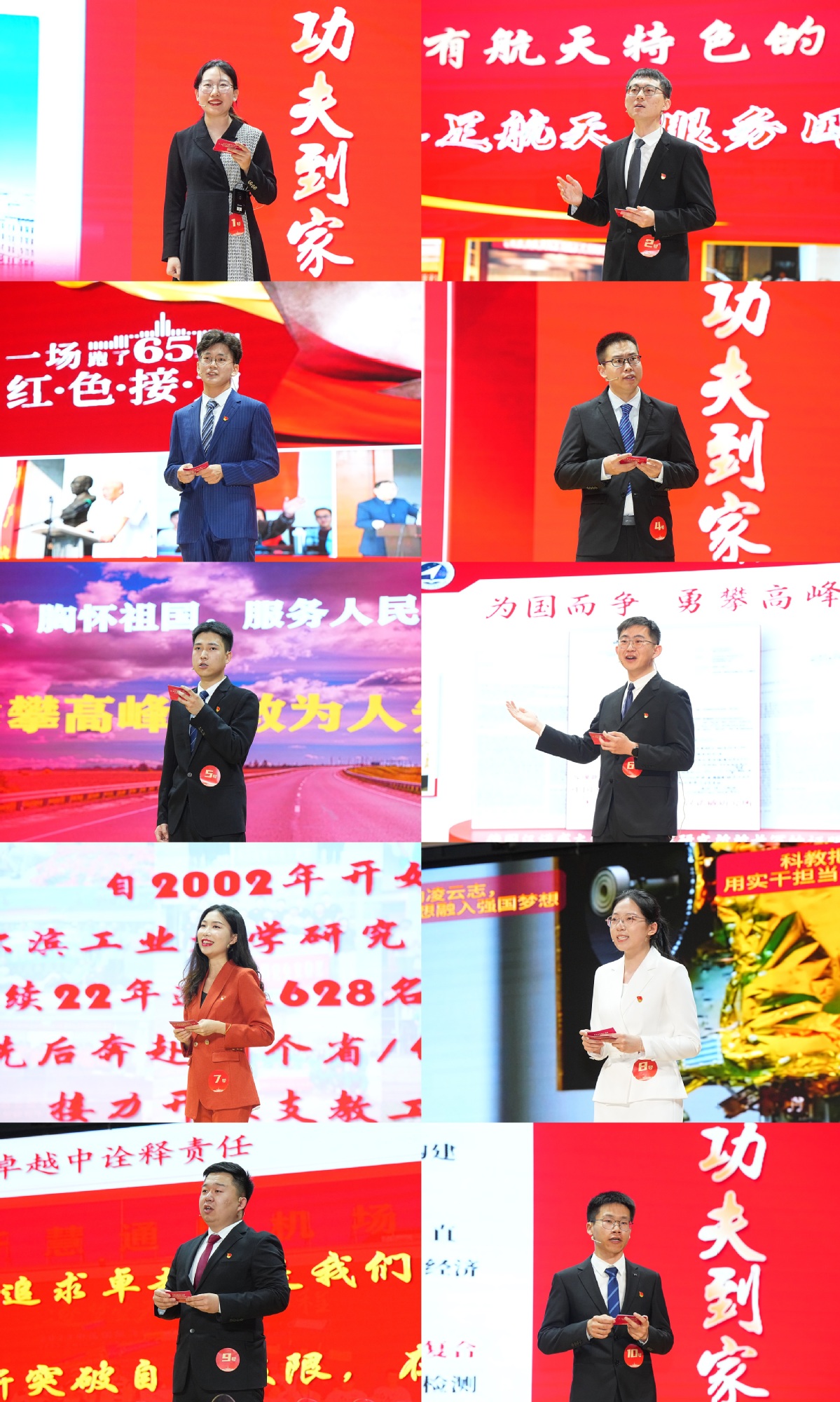 “走在前列,绝不是一个人走得多远,而是一群人走得更远。”“我所在的团队平均年龄28.5岁,在高温、辐射、太空等‘生命禁区’破解难题。”“以‘守正’传承哈工大人许党报国的红色基因,以‘进取’激情弘扬哈工大丰富的精神文化,以‘前列’标准勇担航天第一校‘尖兵’重任……”