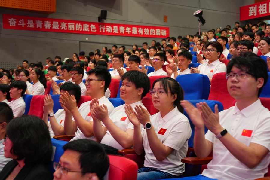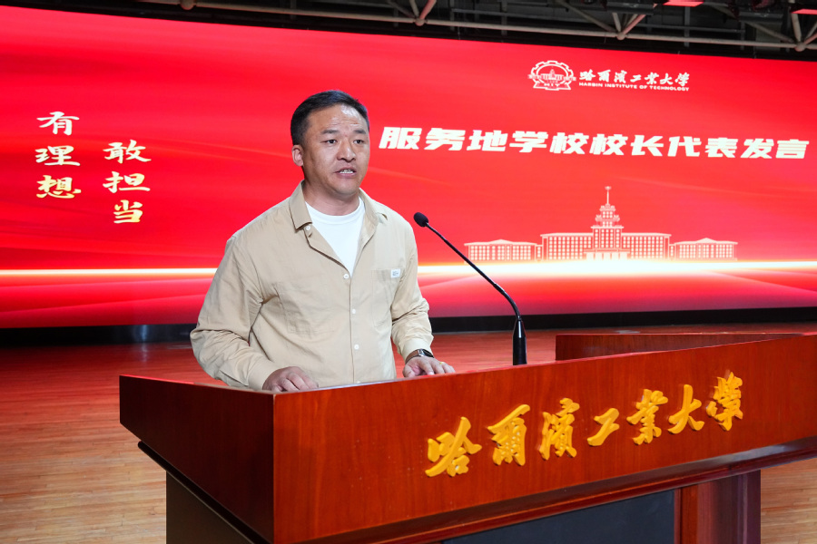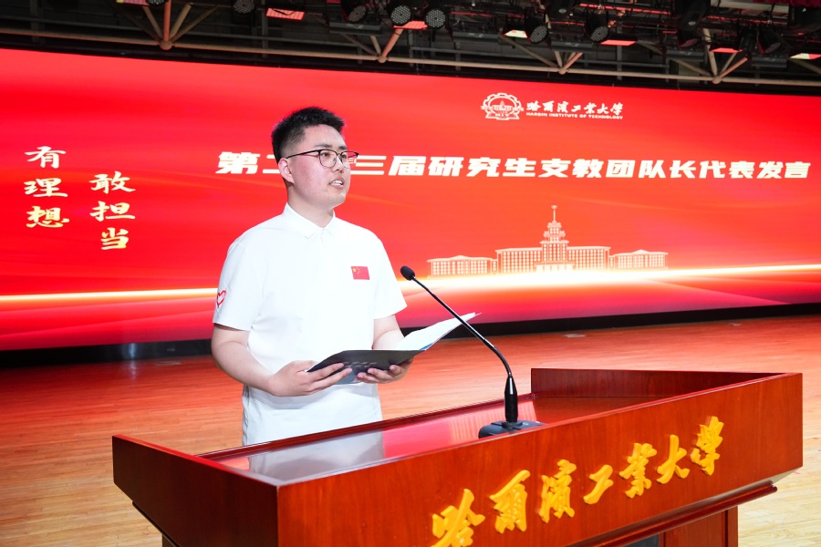 “在哈工大中心看到第二十二届研支团出征的视频,镜头里那些跨越山河的课堂、那些点亮星光的瞬间,让我第一次对支教有了具象化的认识。”“支教结束时,一位腼腆的小男生向我们递来一张纸条,上面写着:有你们在的每一天,我格外开心和高兴,期待你们下次来临。这句话如同一颗种子,深深扎根在我的心中,让我下定决心,要将支教的路,继续走下去。”“作为一个从乡村走出来再成为志愿者回到乡村支教的孩子,我也希望能够像他们一样,扎根于祖国需要的地方,用青春的热忱回应时代的呼唤……”来自校本部、威海校区和深圳校区的第二十三届研究生支教团代表王瀚石、刘俊毅、肖榆凡先后发言,分享了选择支教的心路历程,并表达了在服务地挺膺青春担当的决心。