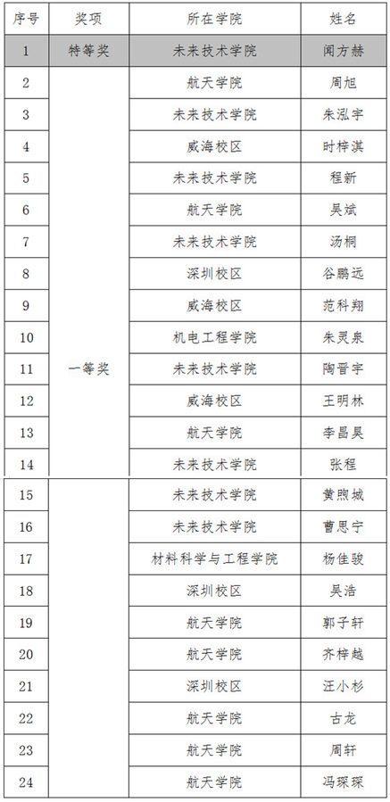 哈工大获特等奖、一等奖名单: