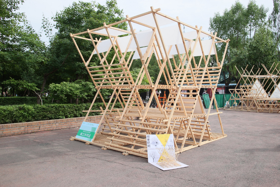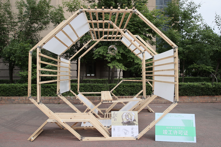 哈工大建造节是由建筑与设计学院组织承办的重要实践类竞赛。本次建造节以“慢∙光”为主题,聚焦可移动、易组装的微型社区中心设计建造,力求打造一个面向公众、可嵌入社区的互动空间。竞赛设置大学组与高中组两个赛道。大学组由来自建筑与设计学院、未来技术学院的15支一年级本科生队伍组成。高中组由来自哈尔滨市第三中学、大庆实验中学等黑龙江省和吉林省省级重点高中的10支参赛队组成。每支队伍需在限定空间内,利用组委会提供的木材与塑料中空板等材料,建构出一座4-6平方米、结构一体、形式完整的木构建筑单体,兼具美学价值与使用功能。