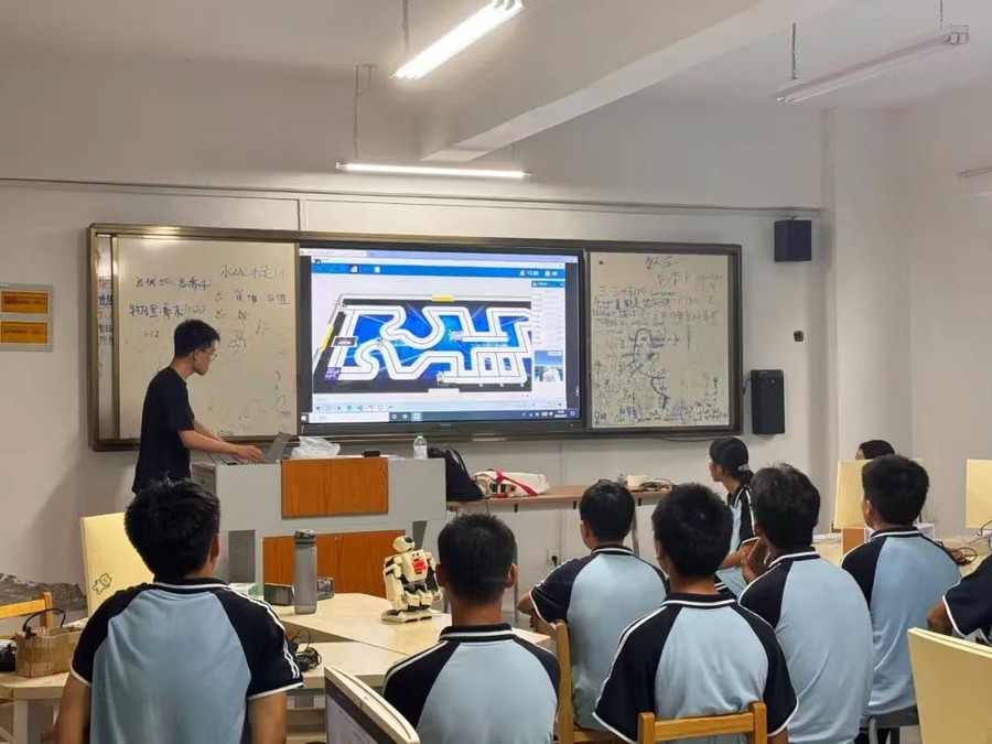 在金秀民族高中的课堂上,哈工大研究生支教团广西金秀队队长赵阳正生动地讲解着机器人编程知识,台下的学生们听得津津有味,不时提出自己的疑问和想法。