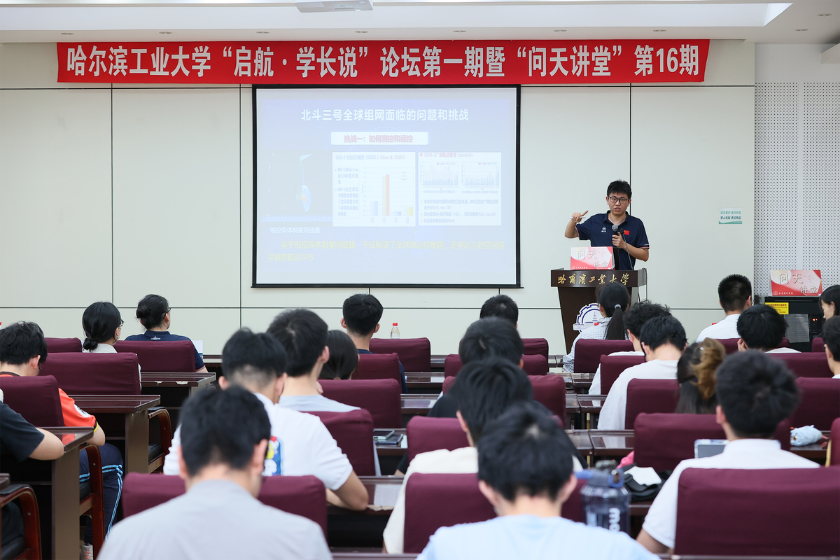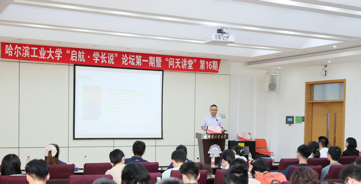 学校还举办了“启航·学长说”学生讲坛。我校2003级校友、东方空间科技有限公司董事长、总经理,引力系列运载火箭总设计师布向伟和2006级校友、中国科学院卫星创新研究院导航卫星总体研究所副所长、北斗三号卫星总体主任设计师李绍前为同学们分享了自己的成长经历。