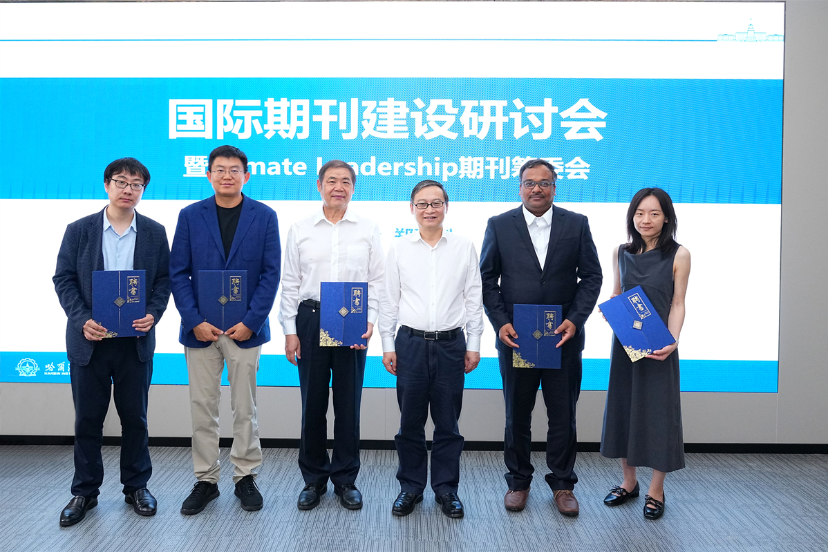 开幕式前,韩杰才出席国际期刊建设研讨会,与国内外学术期刊主编座谈交流,并为正在筹备中、由学校主办的国际期刊《气候领导力》(Climate Leadership)编委代表颁发聘书。