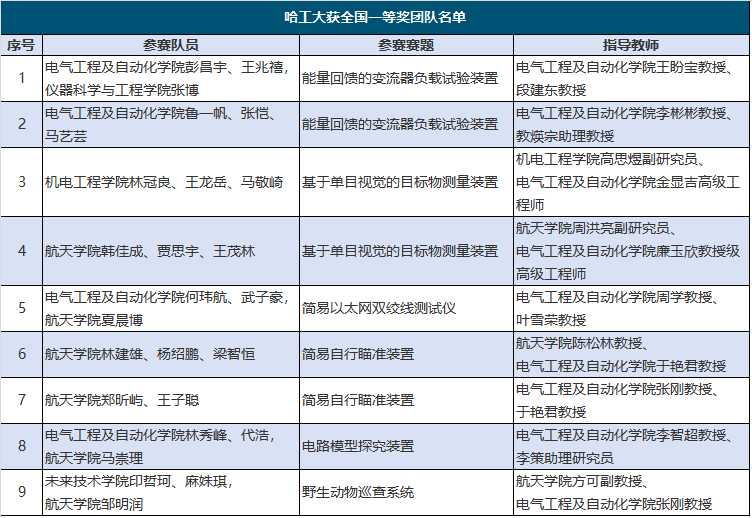 本次获奖学生团队分别来自航天学院、机电工程学院、电气工程及自动化学院、仪器科学与工程学院、未来技术学院、计算学部和深圳校区。