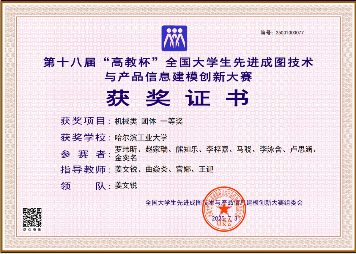 哈工大学子在第十八届全国大学生先进成图技术与产品信息建模创新大赛中获26项一等奖
