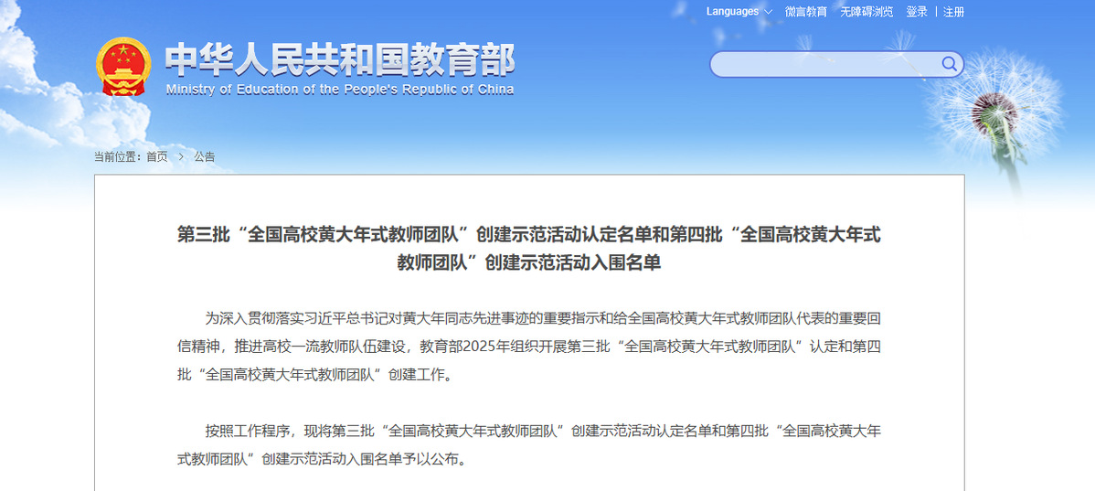 第四批“全国高校黄大年式教师团队”创建示范活动入围名单