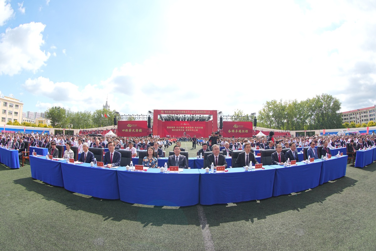 哈工大党委书记陈杰,校长韩杰才,常务副校长孙雪,校党委副书记、纪委书记刘彦辉,副校长沈毅、黄玉东,杜善义院士、曹喜滨院士,校党委常委、组织部部长李明江,校长助理、威海校区校长谭忆秋,原副校长强文义、李绍滨、徐晓飞,以及一校三区校友代表、学校中层干部和师生代表、海内外校友和社会各界代表出席会议。