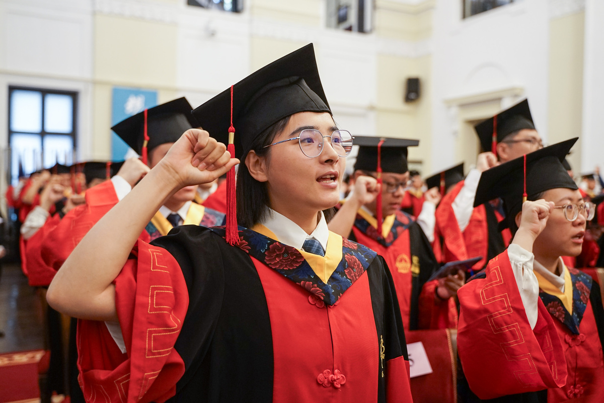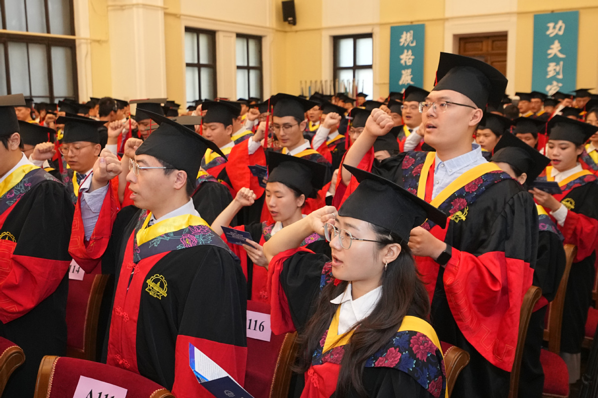 在毕业生代表的领誓下,全体毕业生进行青春宣誓,“不负时代! 不负韶华! 不负母校!奋力书写为中国式现代化挺膺担当的青春篇章!”