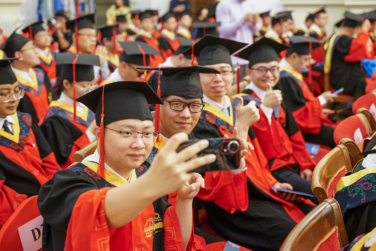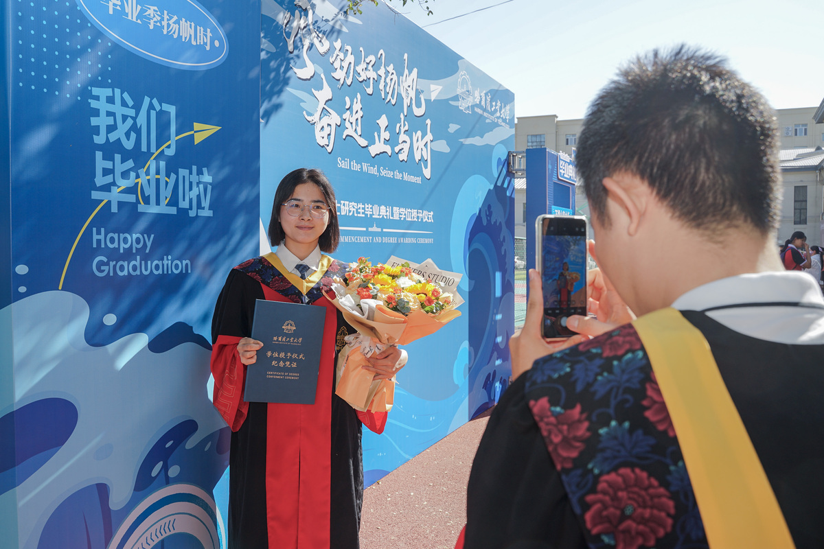 细心地整理好衣饰和流苏、手执寄寓着母校认可与祝福的精美的学位授予仪式纪念凭证,博士毕业生正式踏上新征途。